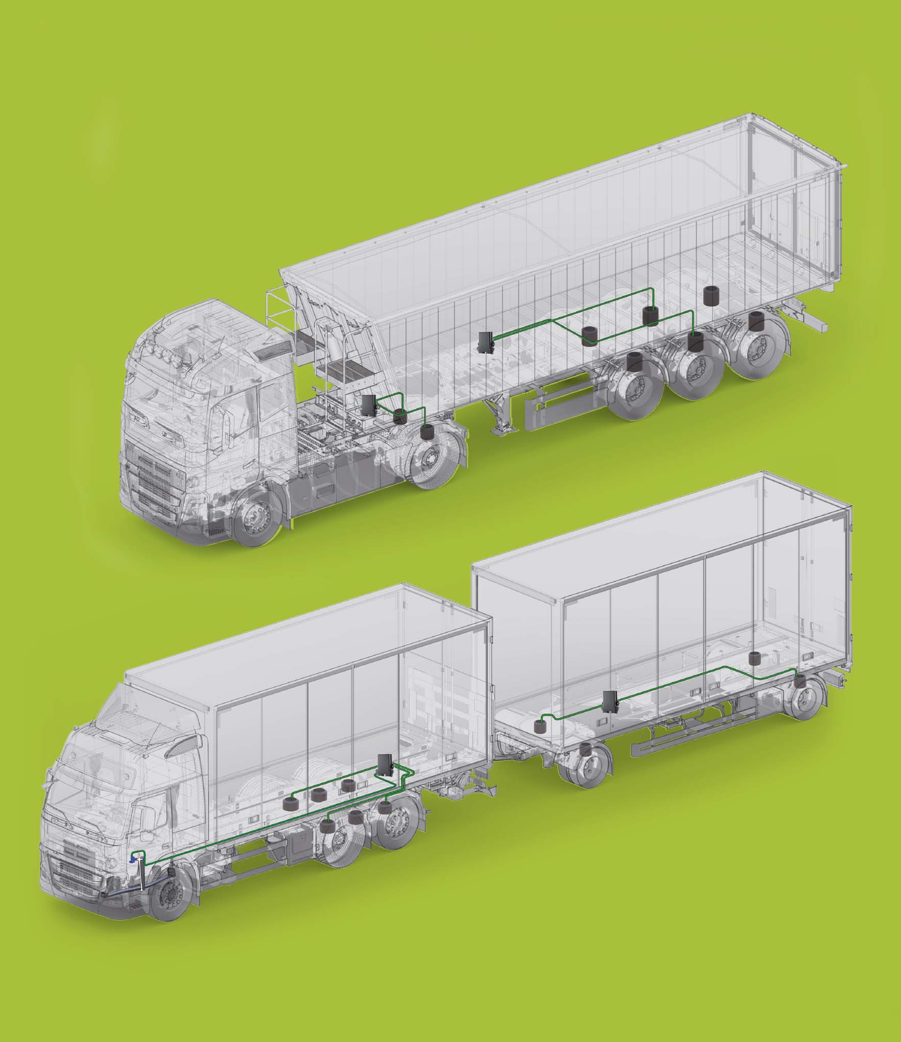 すべての計量データとTPMSデータは、シリアルまたはCan-bus経由でオンボードコンピュータに送信することも、またはクラウド上の外部デバイスに直接送信することもでき、車両の生産性と安全性をコントロール及び管理します。