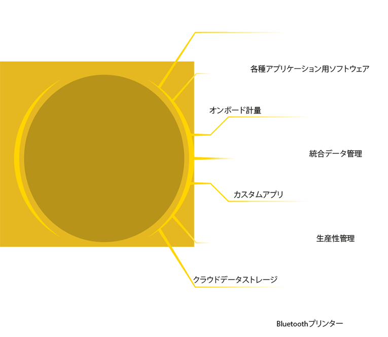 すべての計量データと生産データベースは、シリアルまたはCan-bus経由でオンボードコンピュータに送信することも、またはクラウド上の外部デバイスに直接送信することもでき、車両の生産性と安全性をコントロール及び管理します。